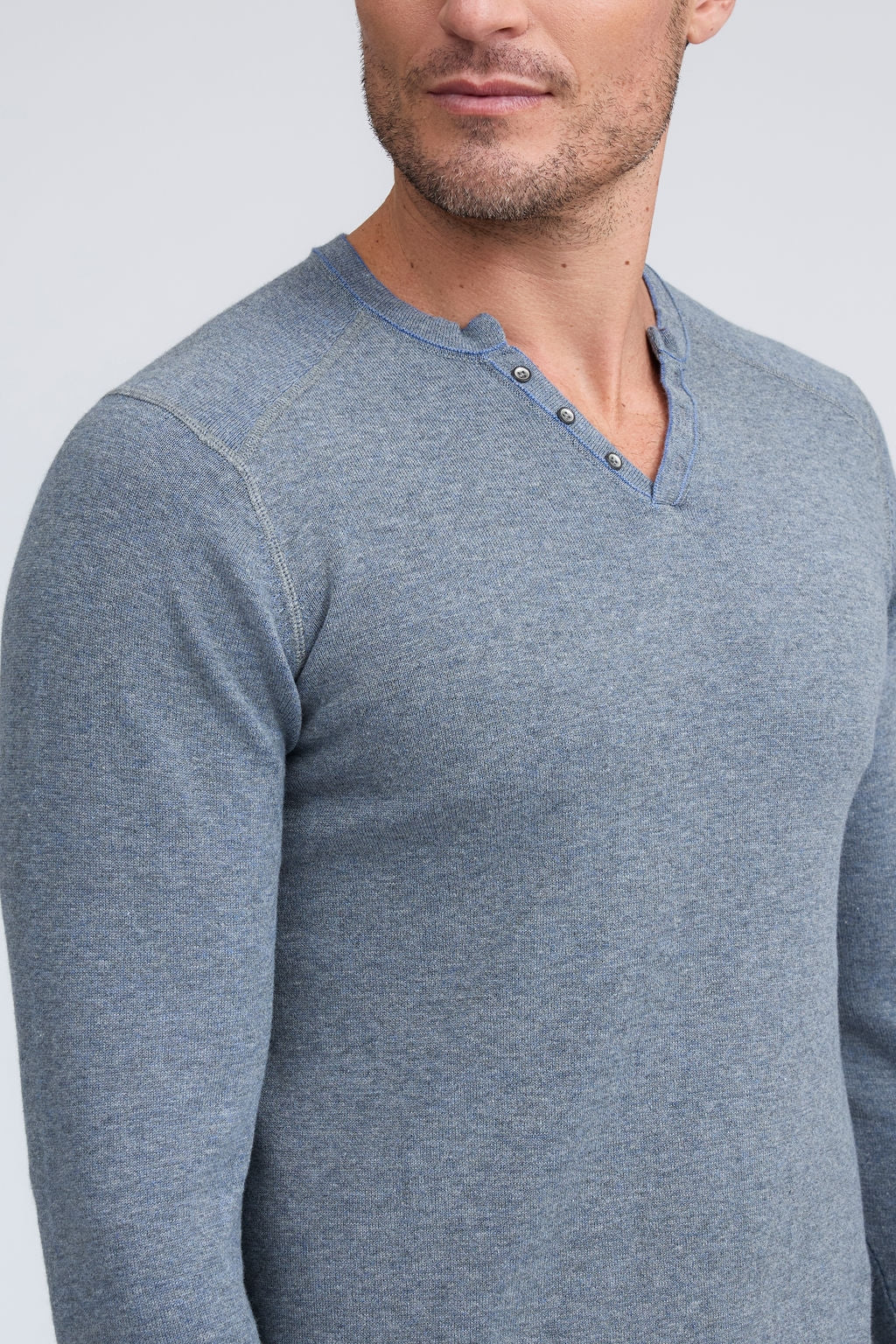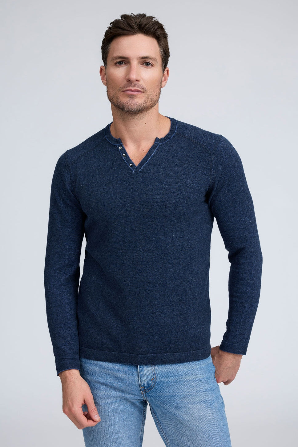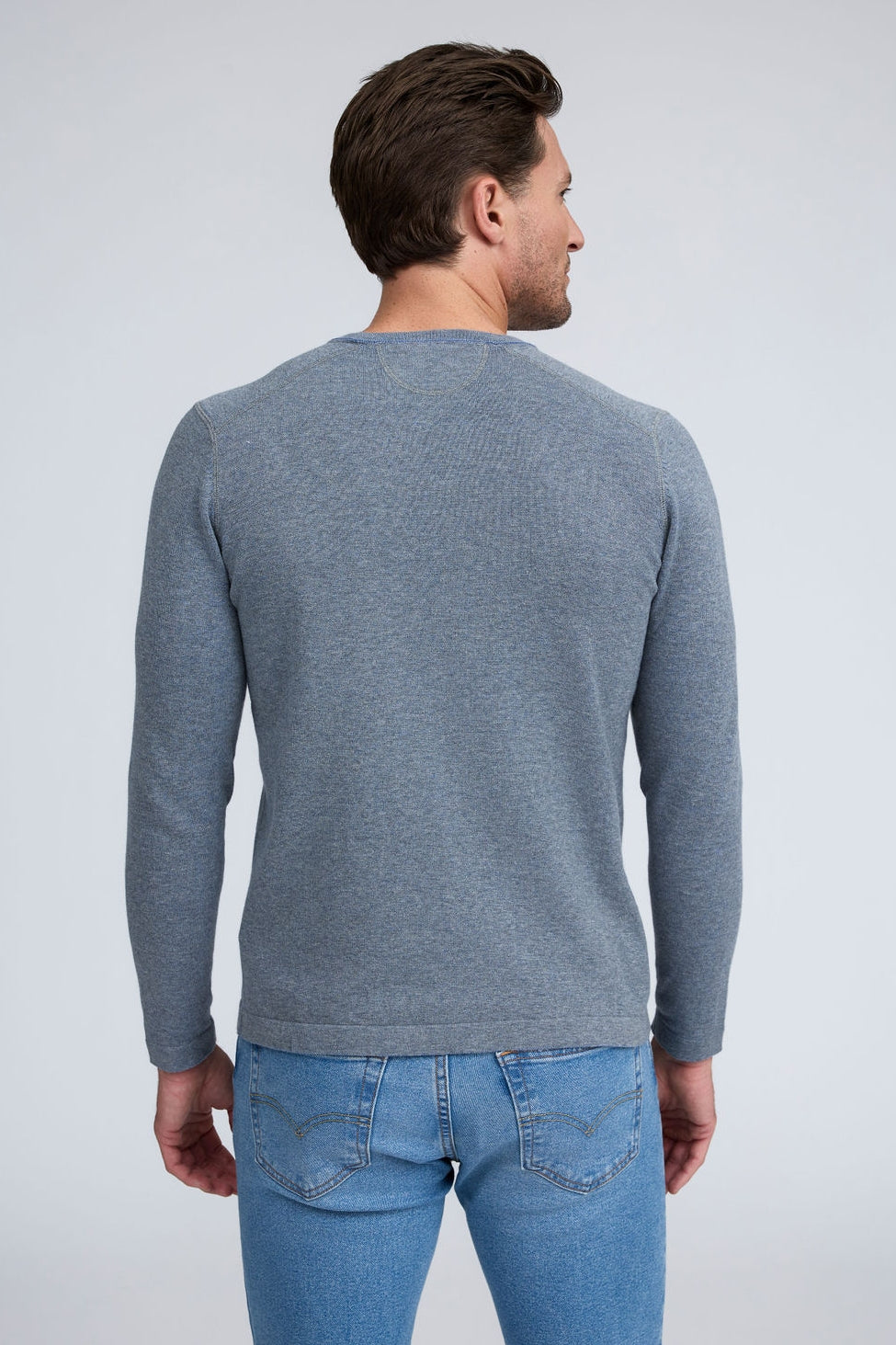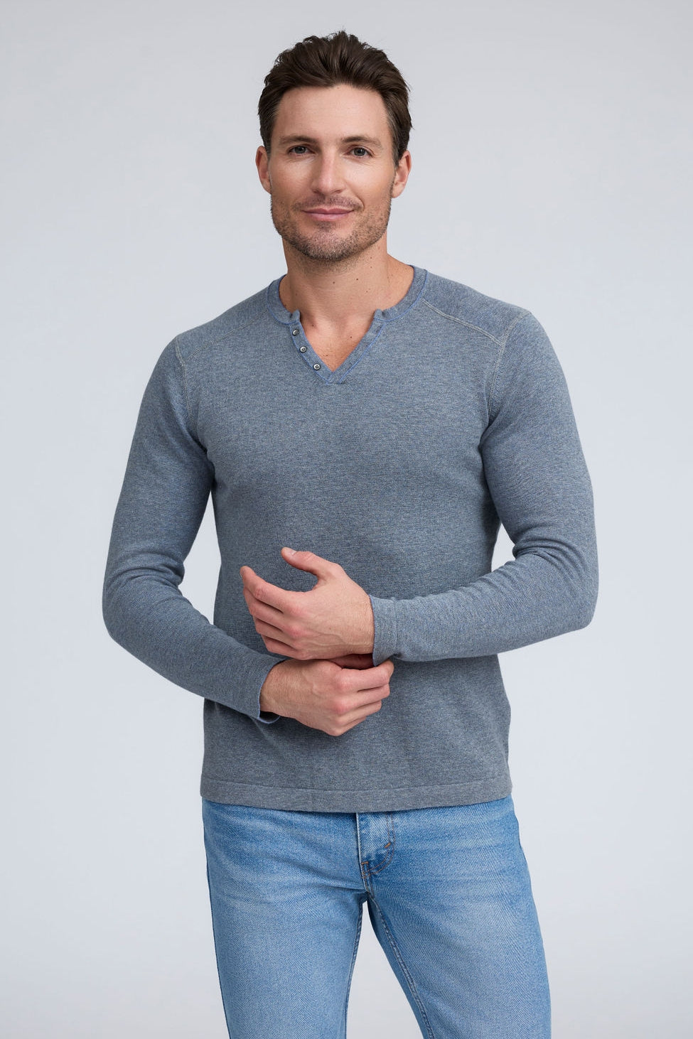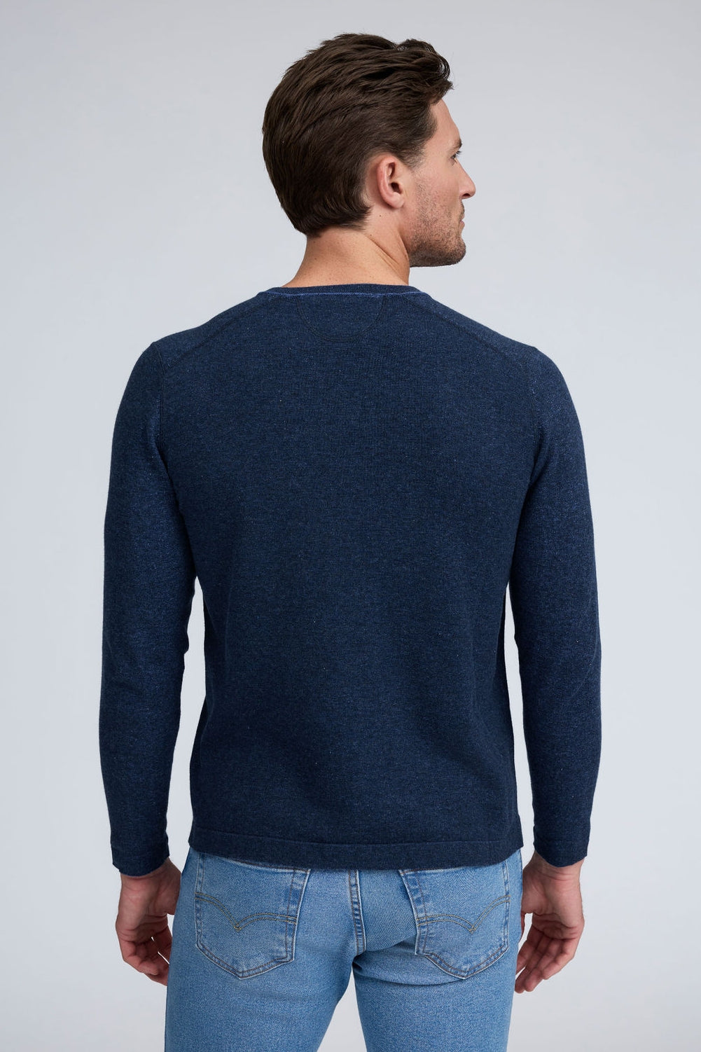 Get two great styles from one sweater with The Luka. Design using a knitting technique that creates a two-tone weathered color effect with contrasting textures. Made in our 100% Pure Cotton for pure comfort, choose between dressed or reverse for a more rugged look with an overlock stitch and exposed seams detailing.