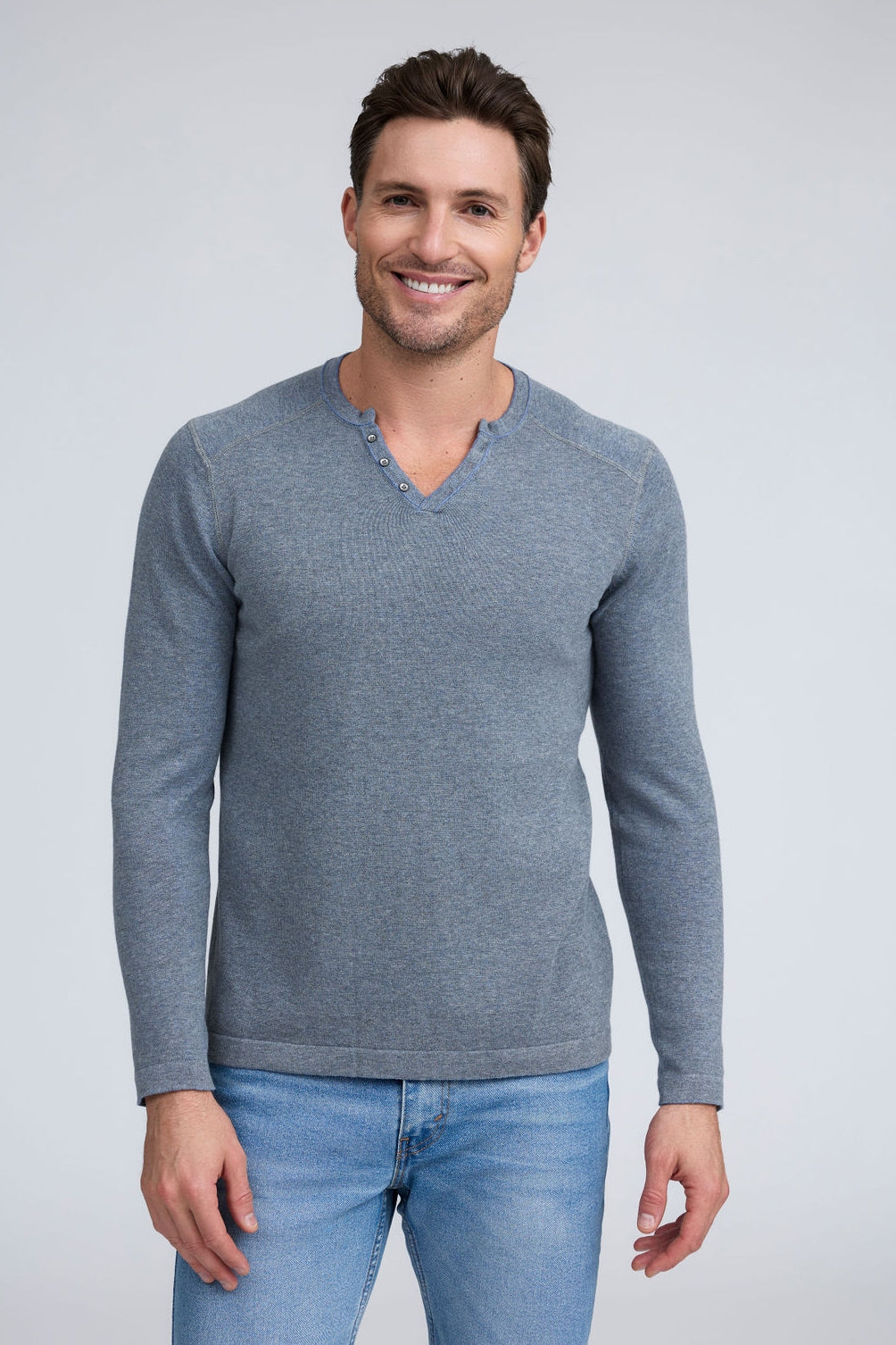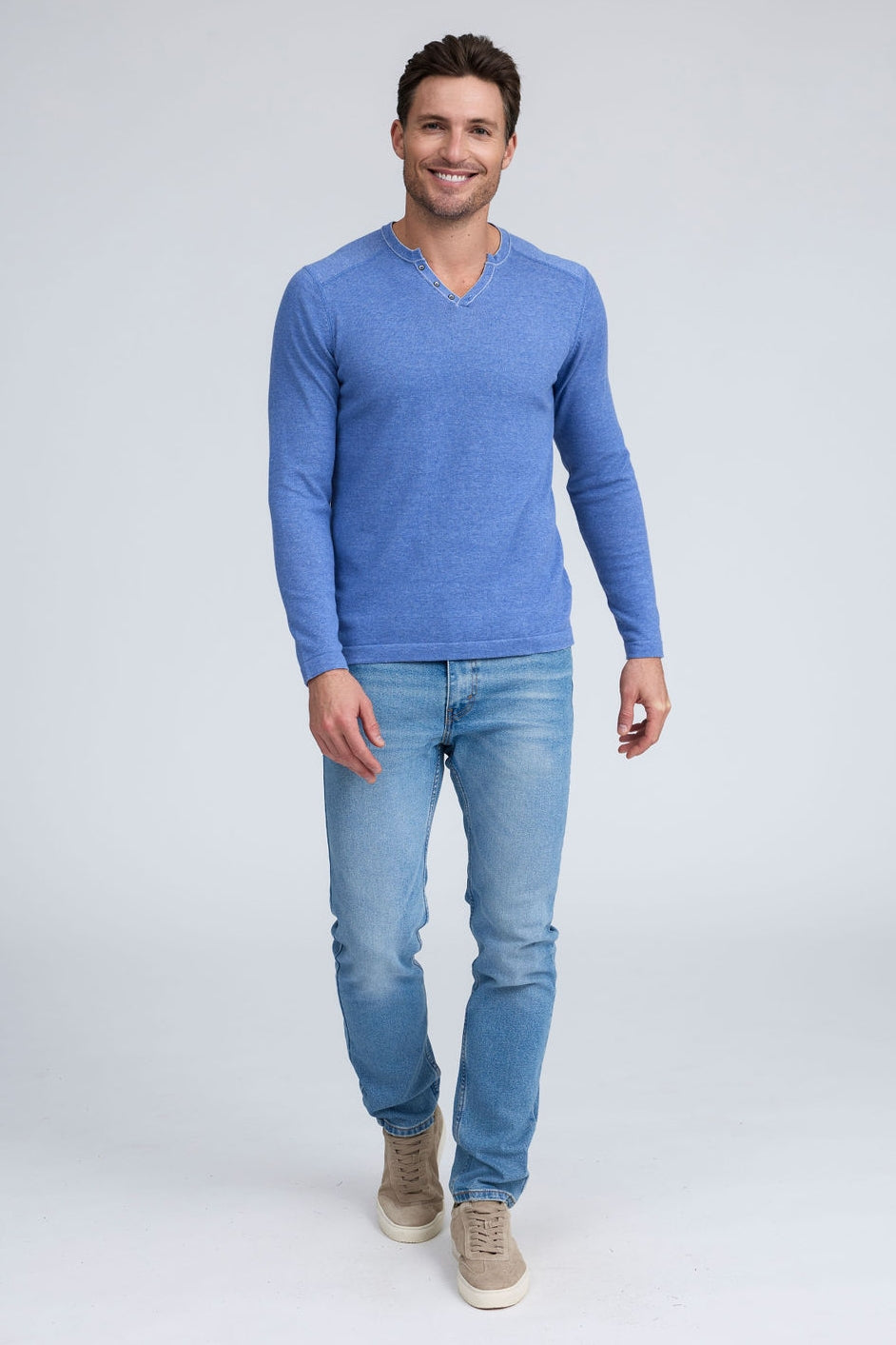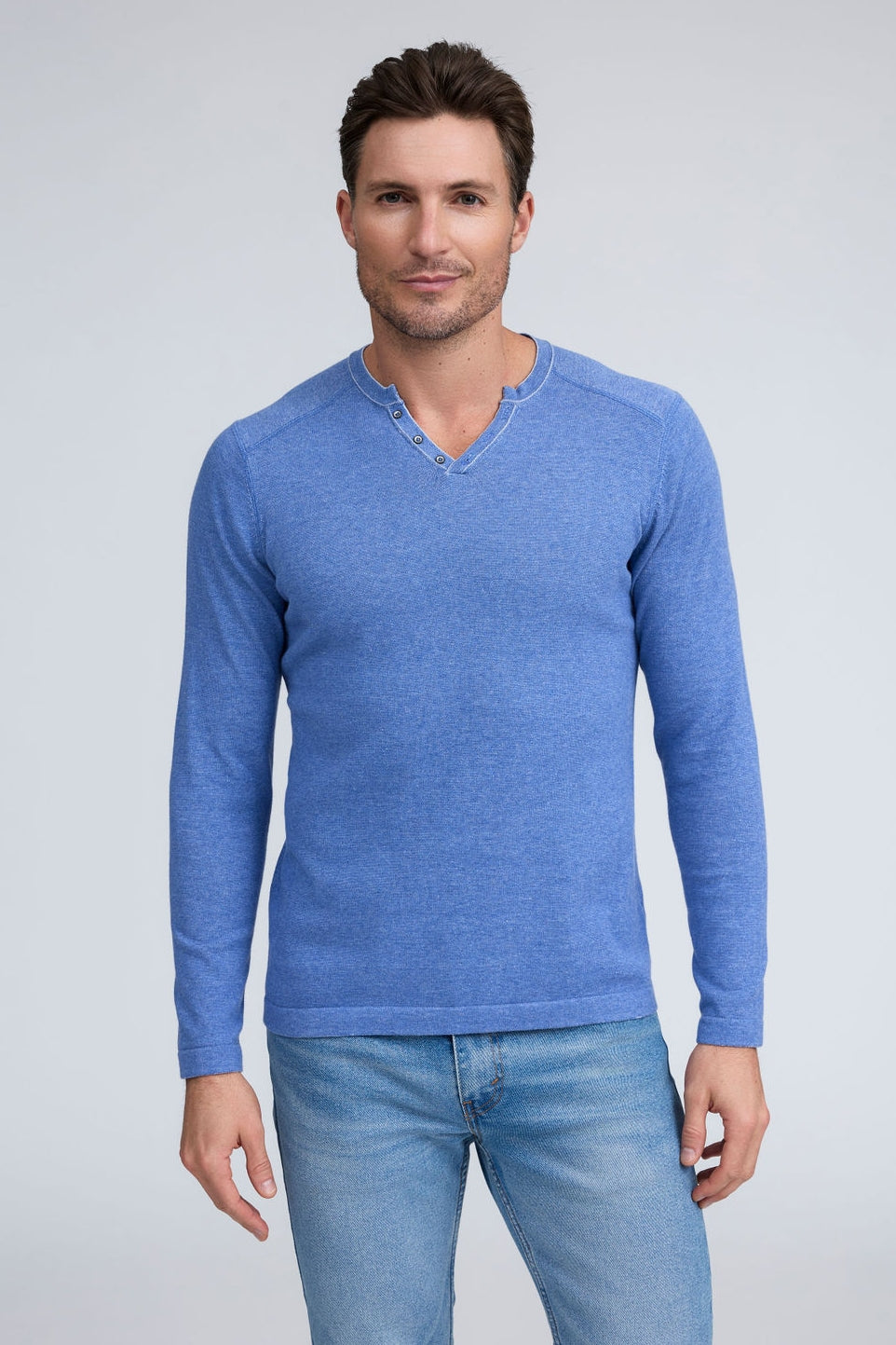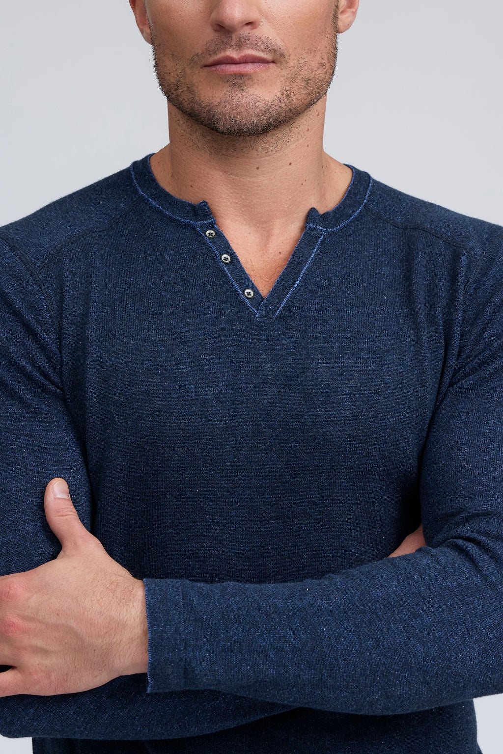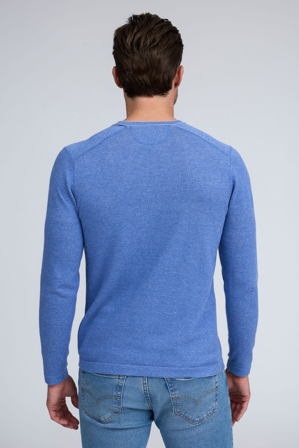 Get two great styles from one sweater with The Luka. Design using a knitting technique that creates a two-tone weathered color effect with contrasting textures. Made in our 100% Pure Cotton for pure comfort, choose between dressed or reverse for a more rugged look with an overlock stitch and exposed seams detailing.