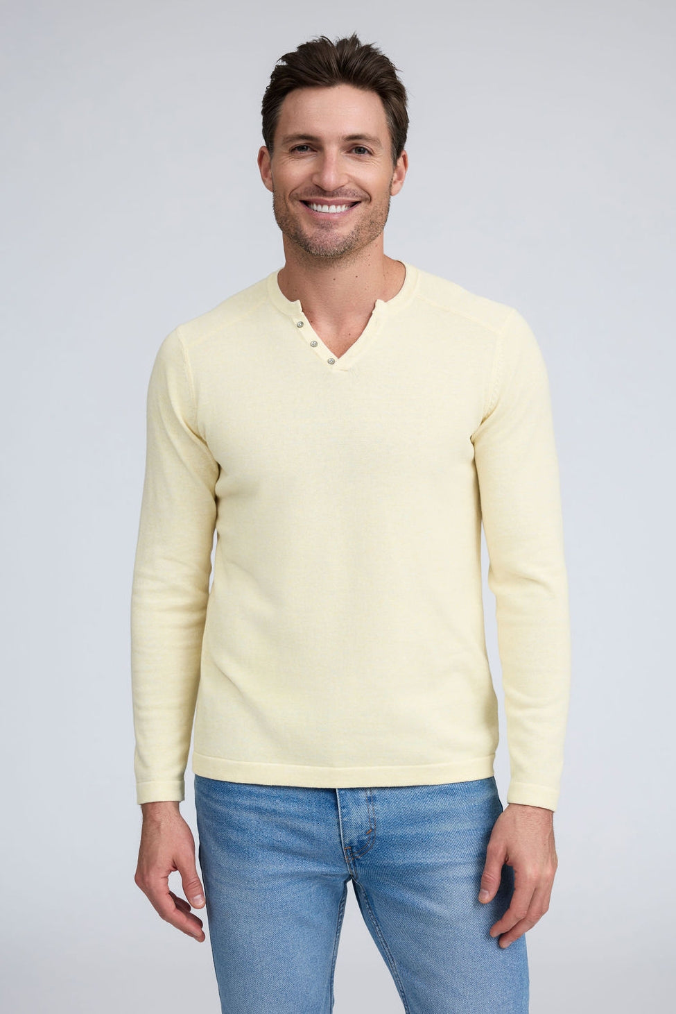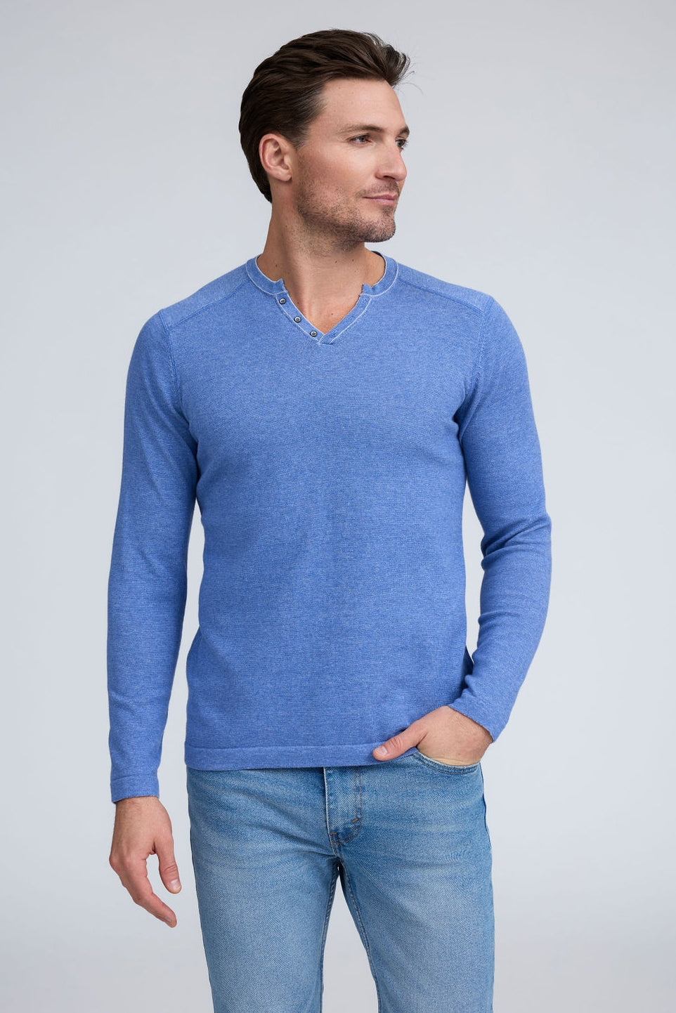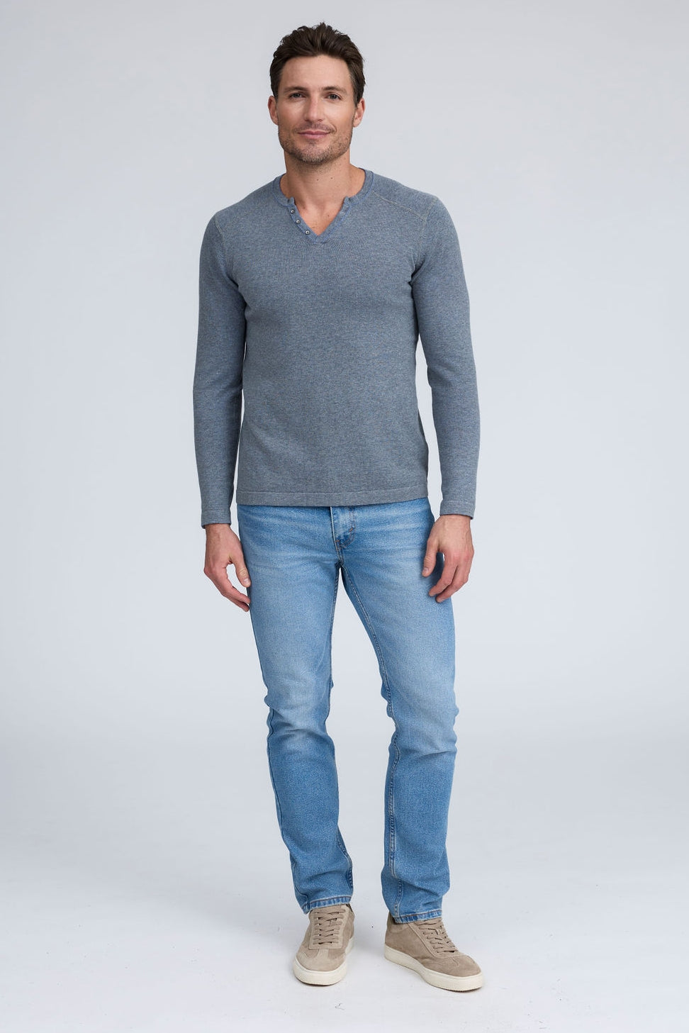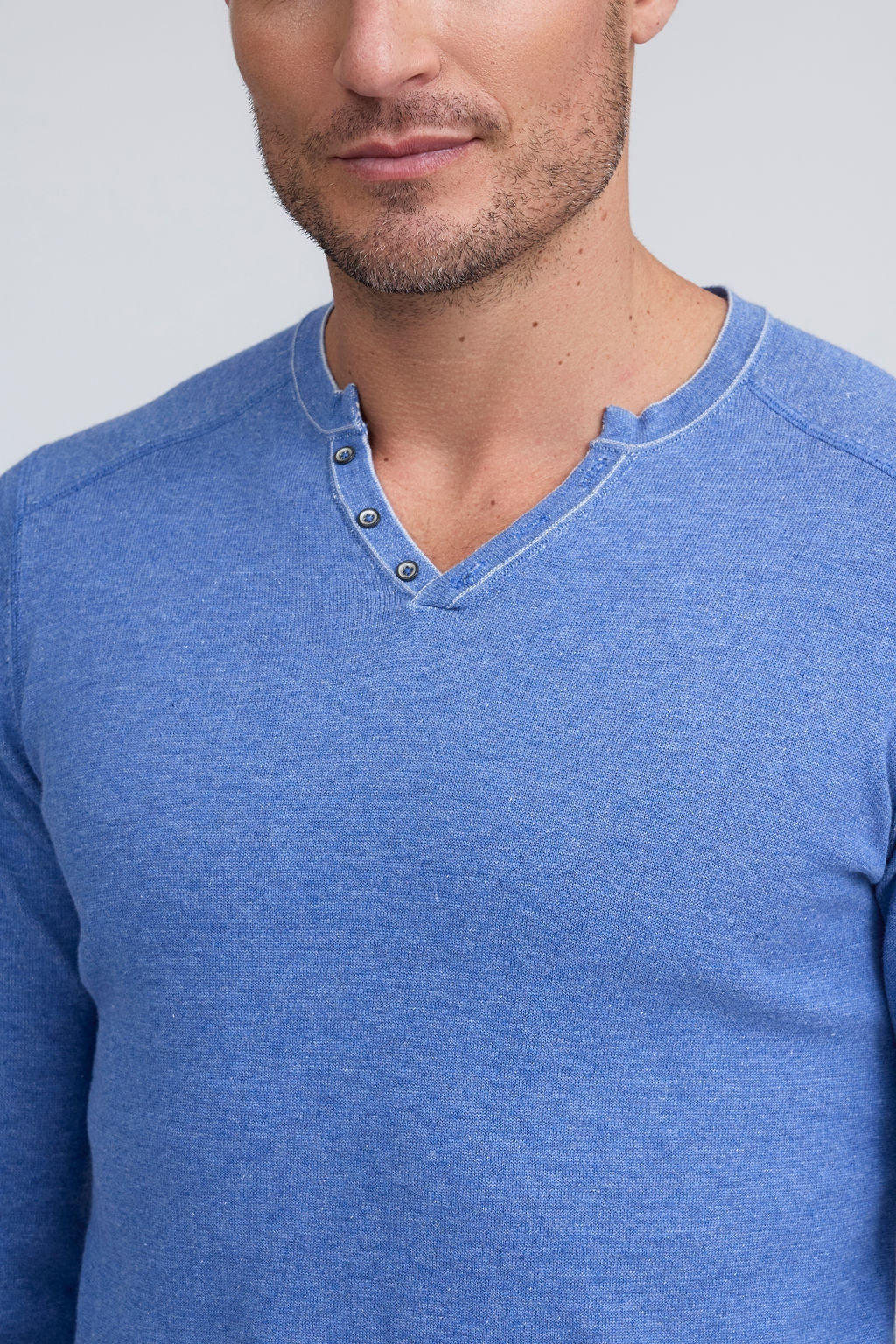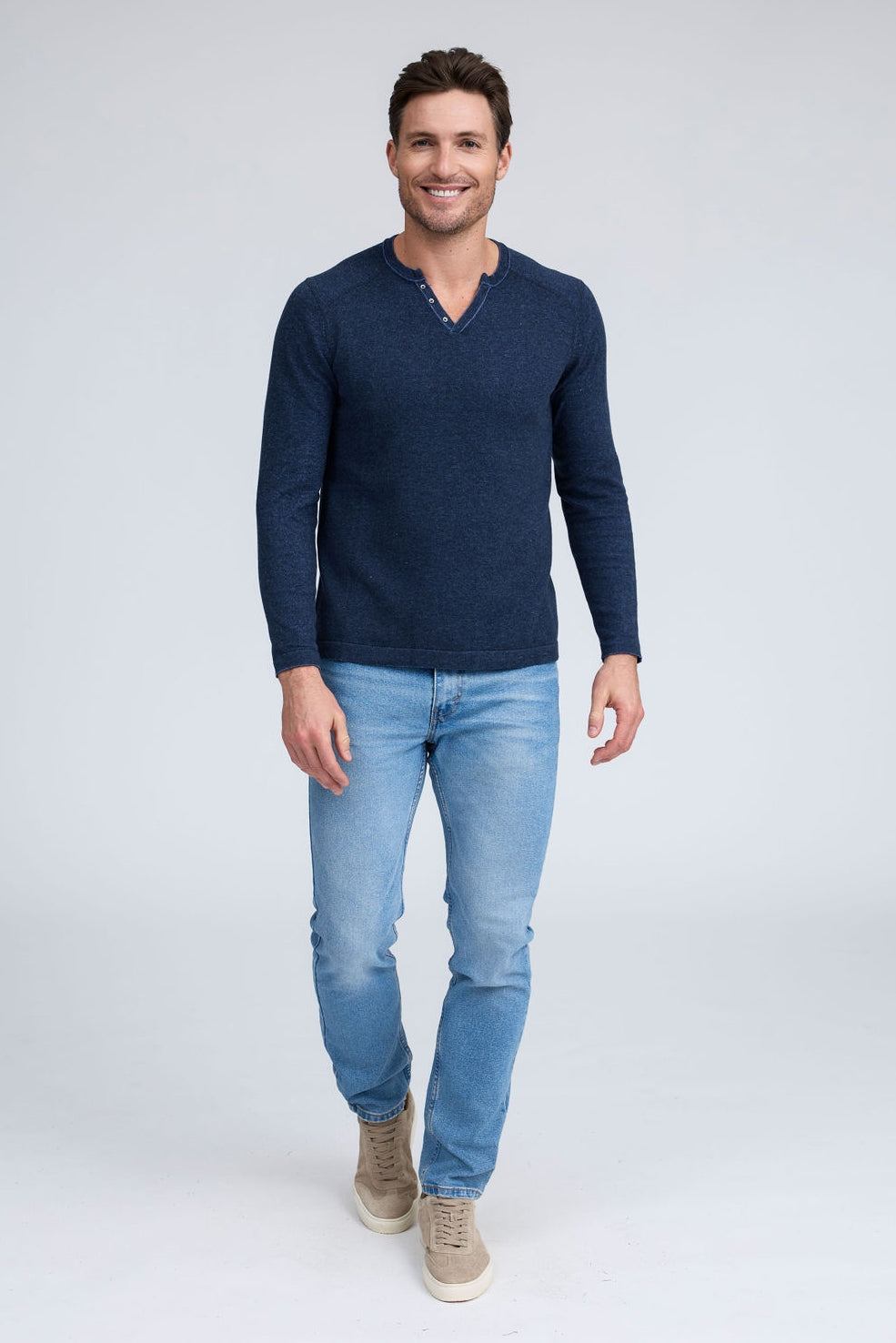 Get two great styles from one sweater with The Luka. Design using a knitting technique that creates a two-tone weathered color effect with contrasting textures. Made in our 100% Pure Cotton for pure comfort, choose between dressed or reverse for a more rugged look with an overlock stitch and exposed seams detailing.