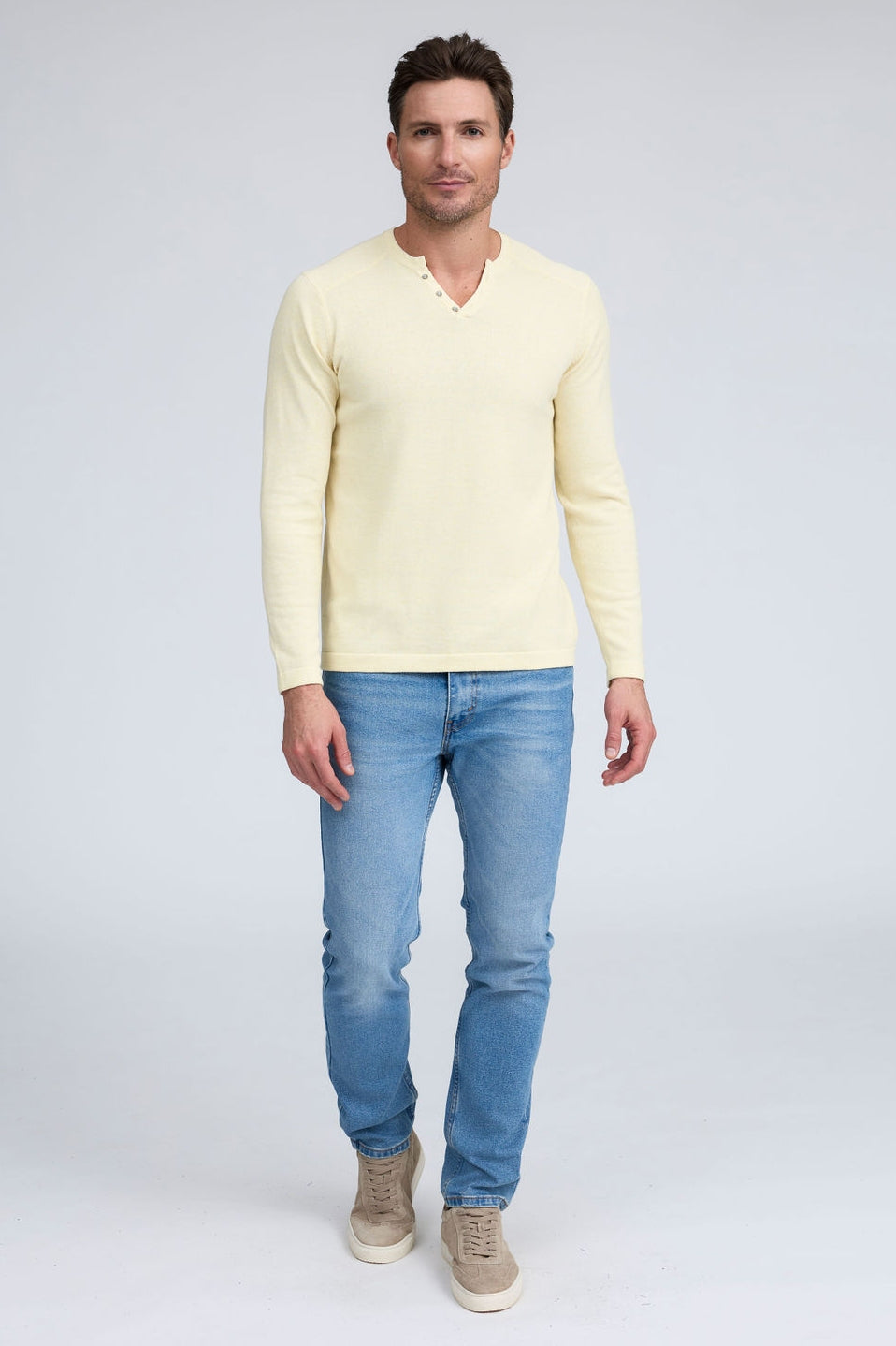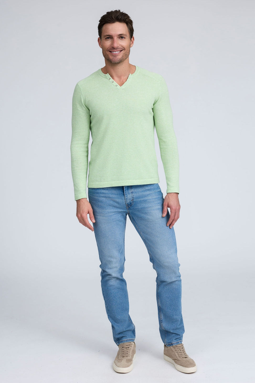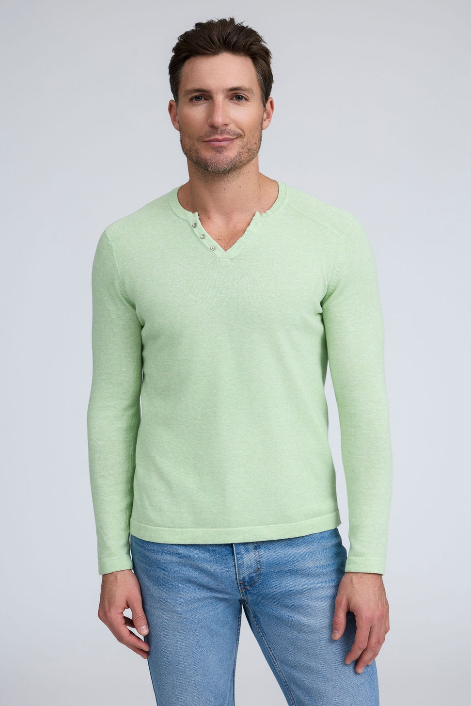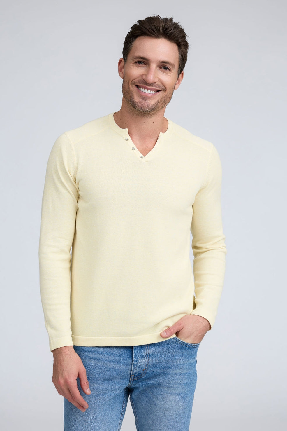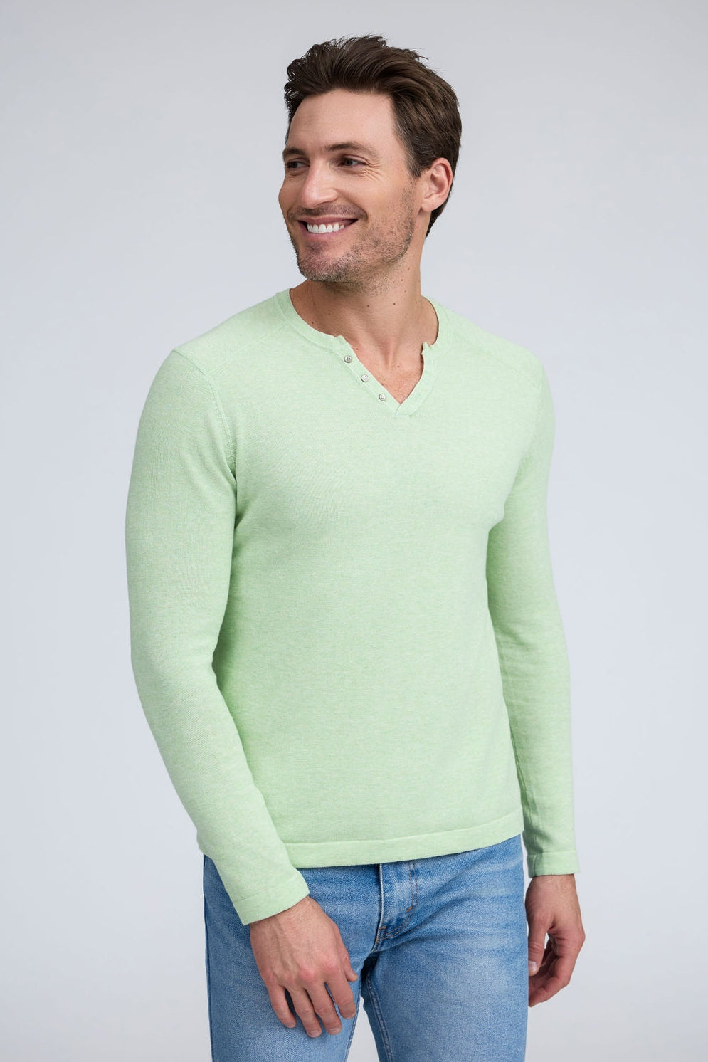 Get two great styles from one sweater with The Luka. Design using a knitting technique that creates a two-tone weathered color effect with contrasting textures. Made in our 100% Pure Cotton for pure comfort, choose between dressed or reverse for a more rugged look with an overlock stitch and exposed seams detailing.
