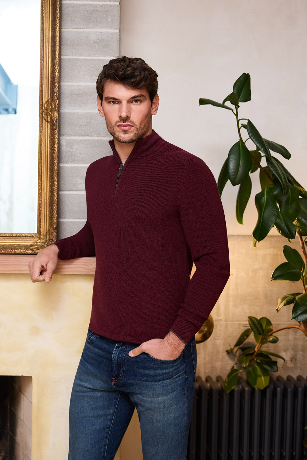 100% Merino Wool Zip Mock Neck Sweater