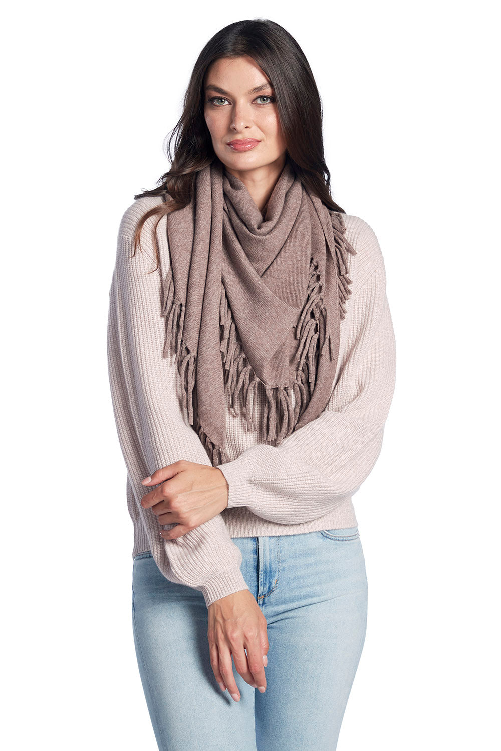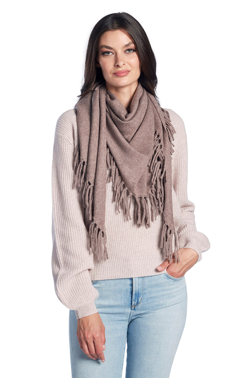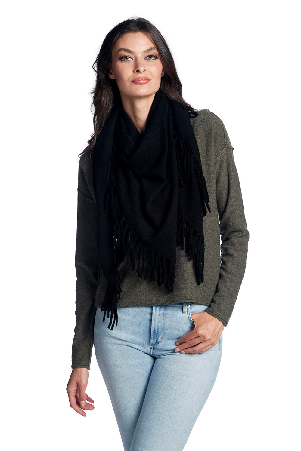 The Nell is a fun way to keep warm and add that extra something special to your outfit. The trendy fringe scarf works well to wrap around your neck or drape as a shawl, you will love this piece!