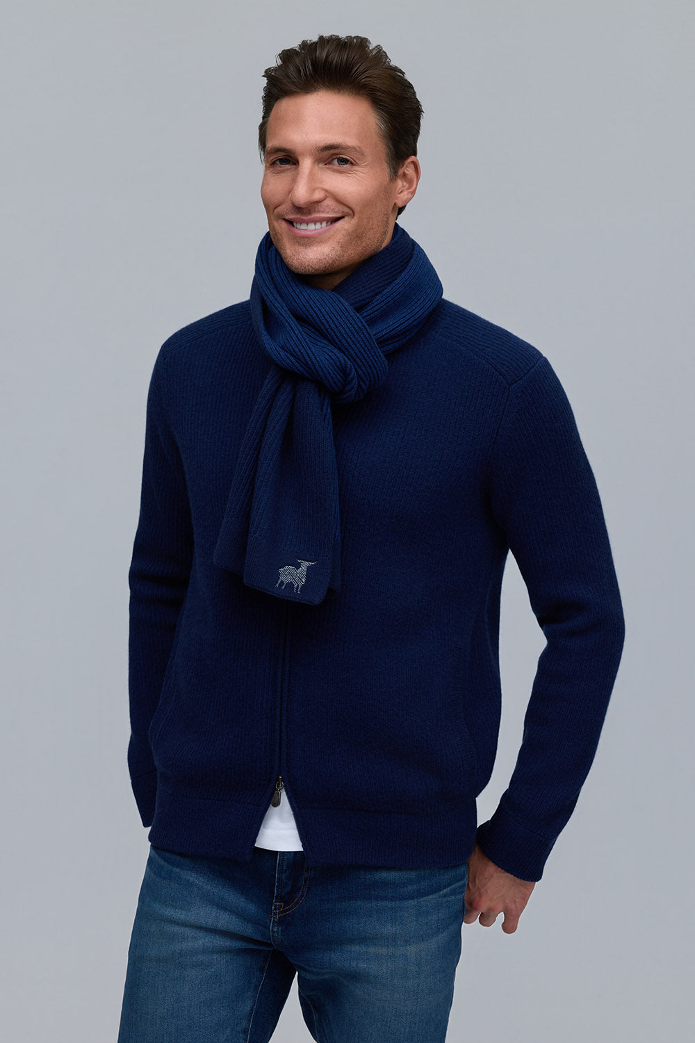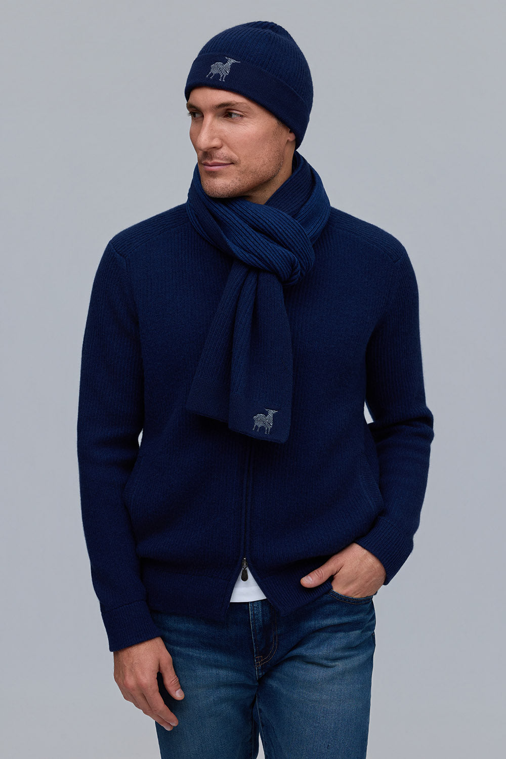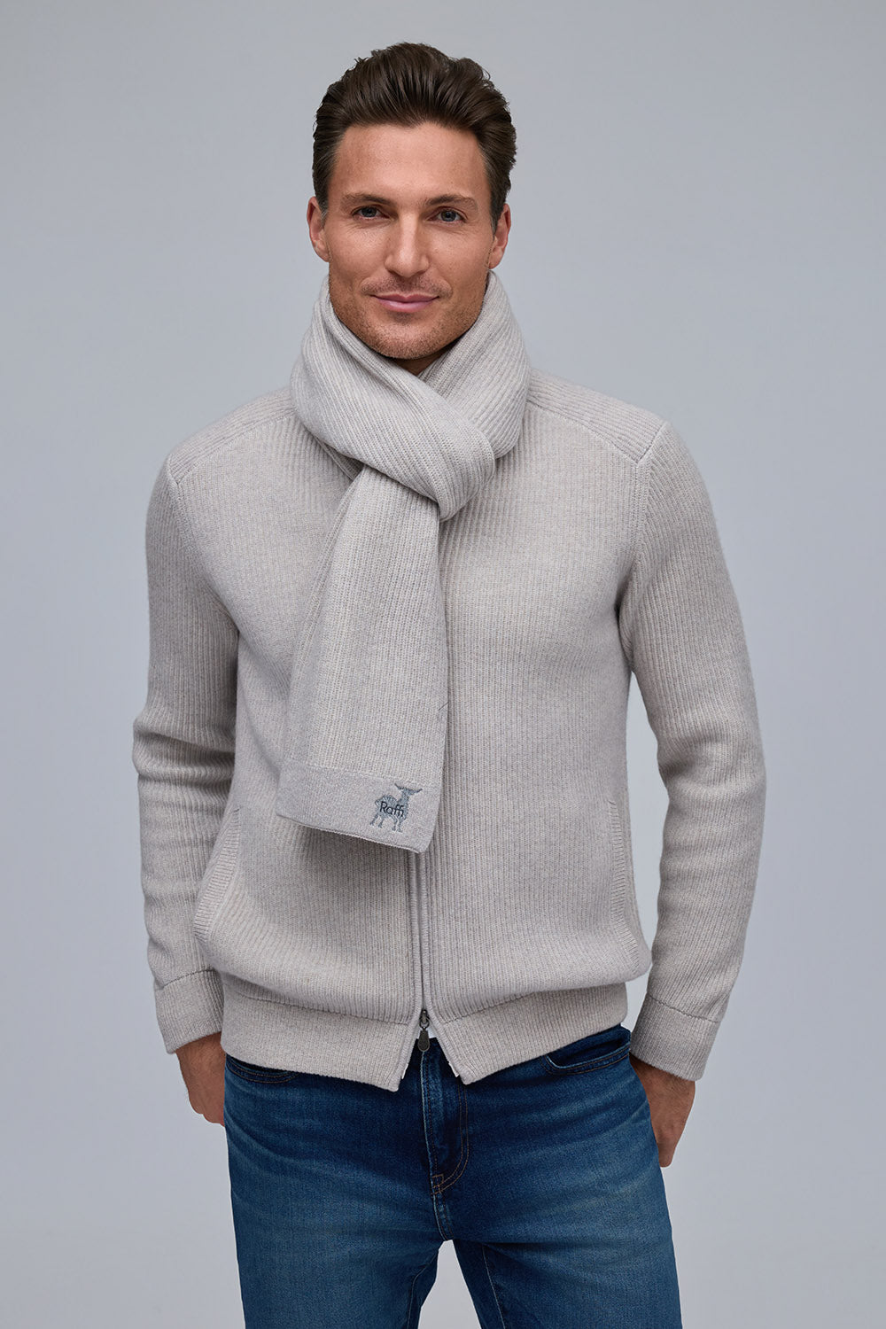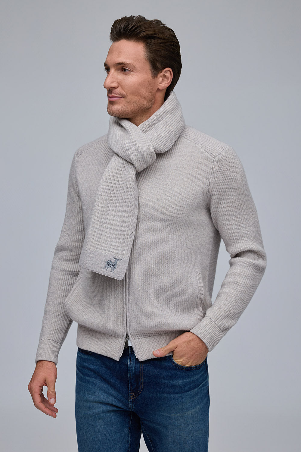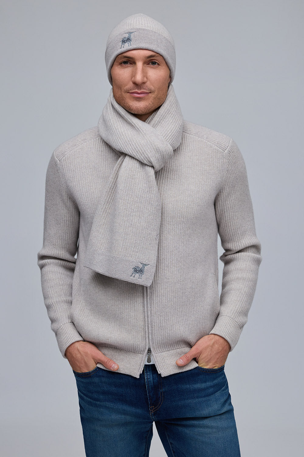 Crafted from a luxurious 90% wool, 10% cashmere blend, this Vanise English rib scarf offers exceptional warmth and softness. Featuring an embroidered Raffi logo and rich ribbed texture, it’s available in classic cloud and navy and pairs perfectly with the Cassian jacket and Solace Hat for a coordinated, elevated look.