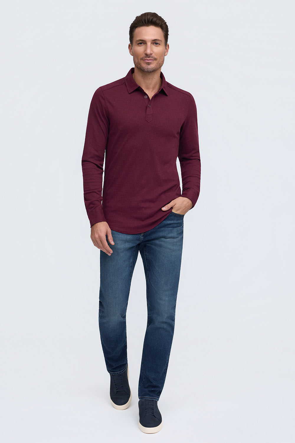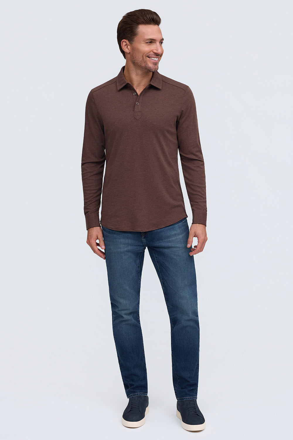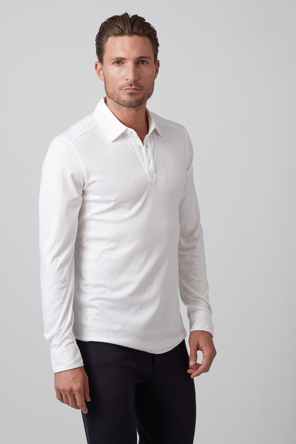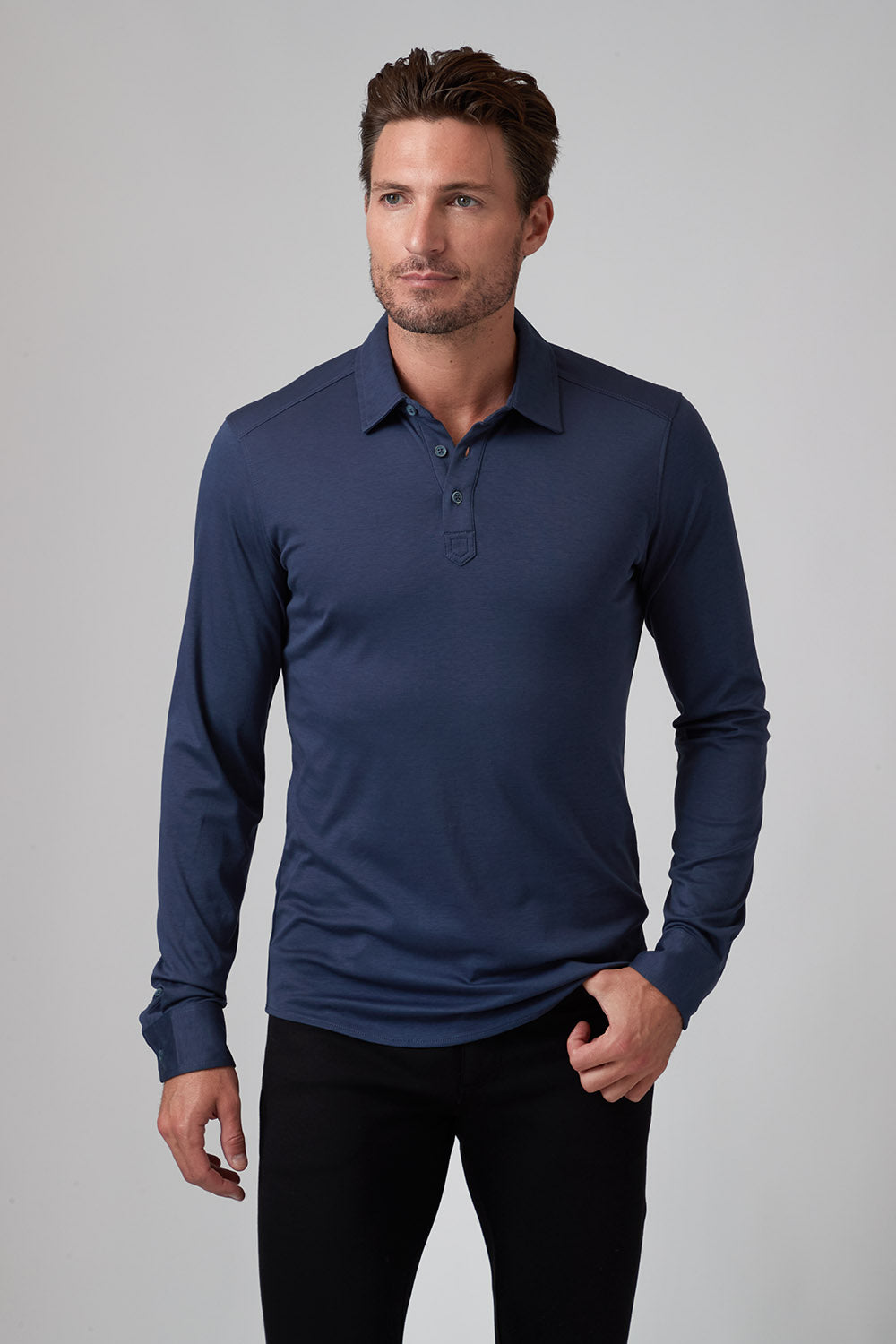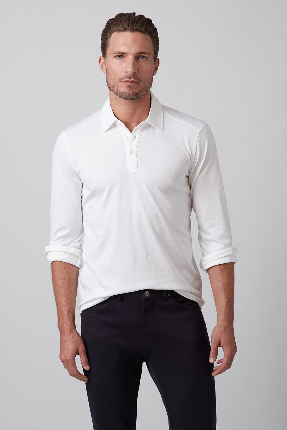 The Riviera is your go-to shirt when you want to be casually dashing. We made this three-button polo from 100% Aqua Cotton for a luxurious feel and added a buttoned cuff for a rich look. This best-selling style pairs well with The Jasper, our cotton-blend pants.