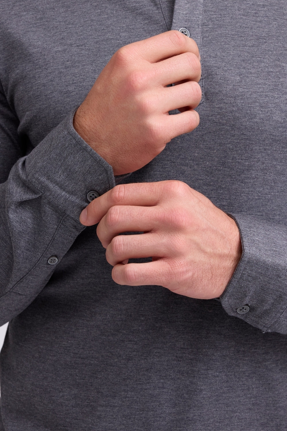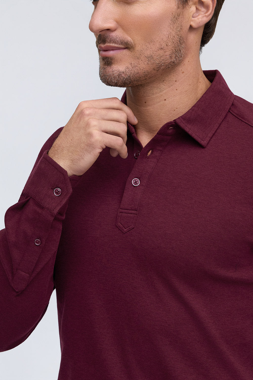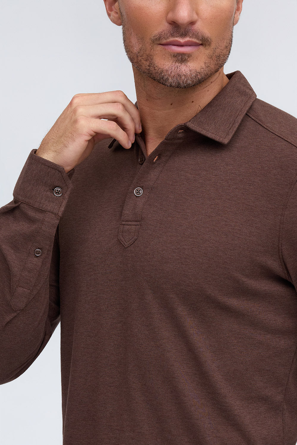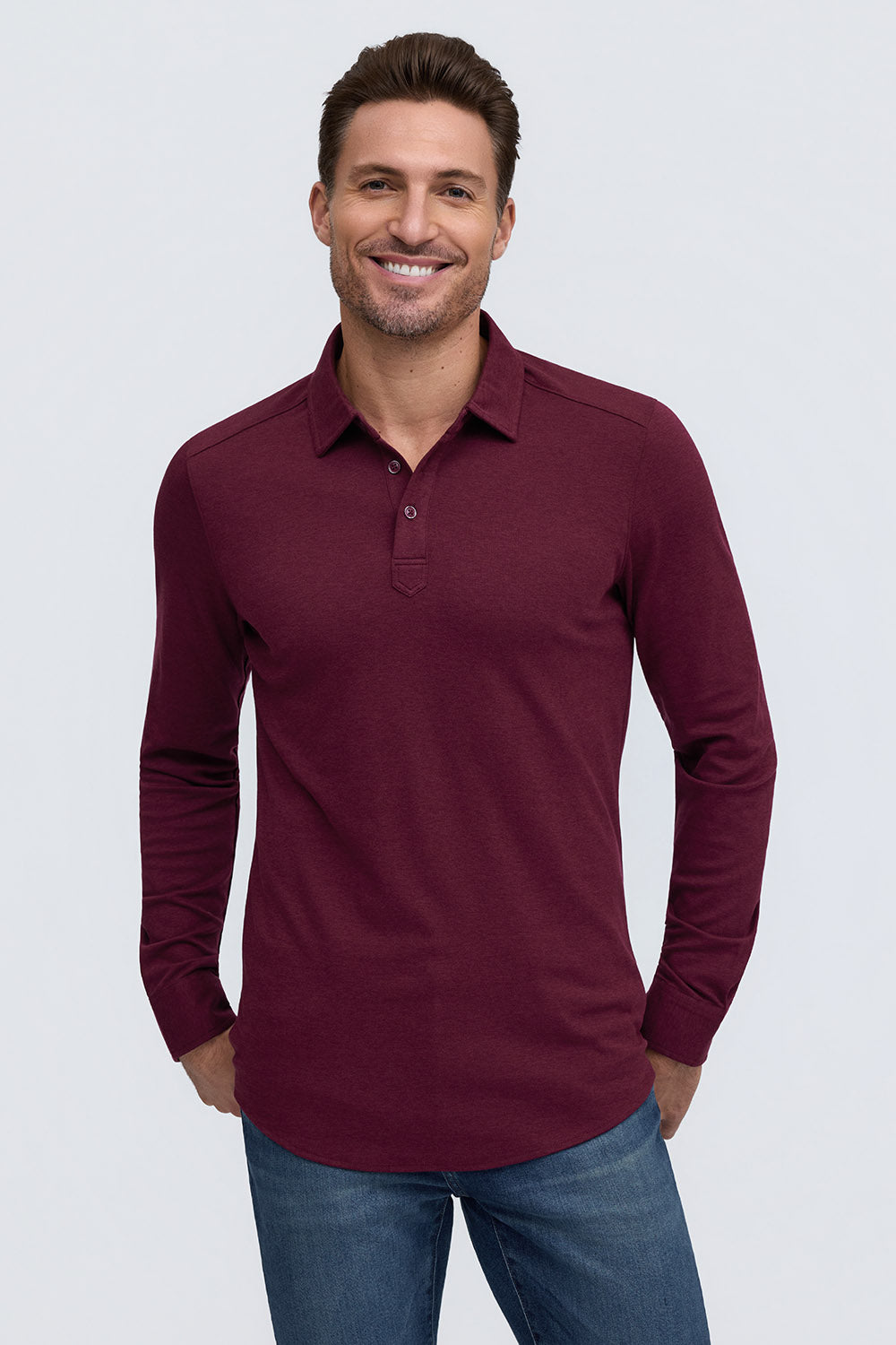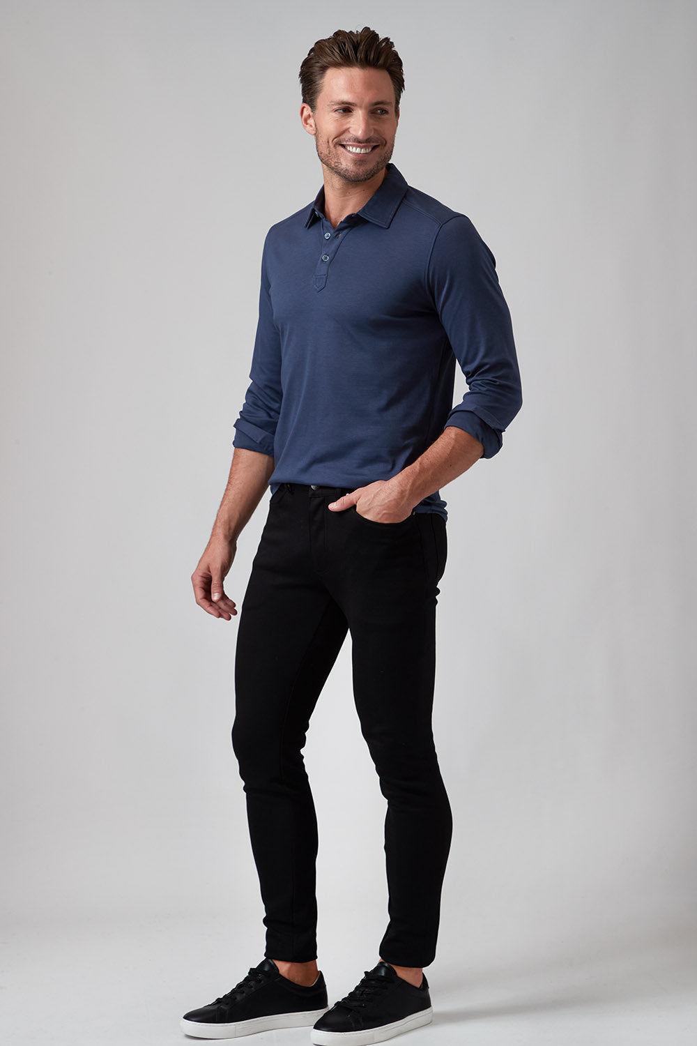 The Riviera is your go-to shirt when you want to be casually dashing. We made this three-button polo from 100% Aqua Cotton for a luxurious feel and added a buttoned cuff for a rich look. This best-selling style pairs well with The Jasper, our cotton-blend pants.