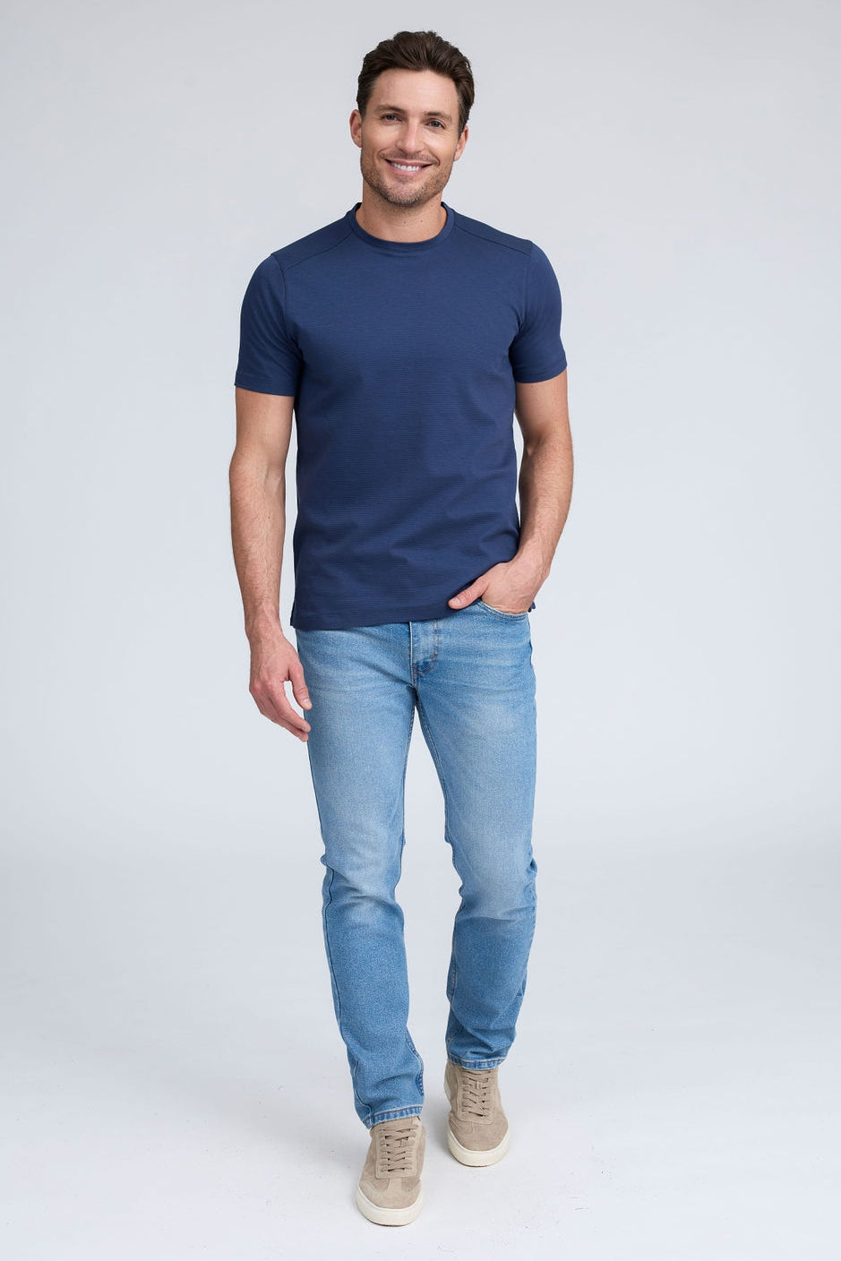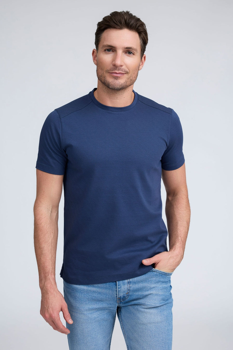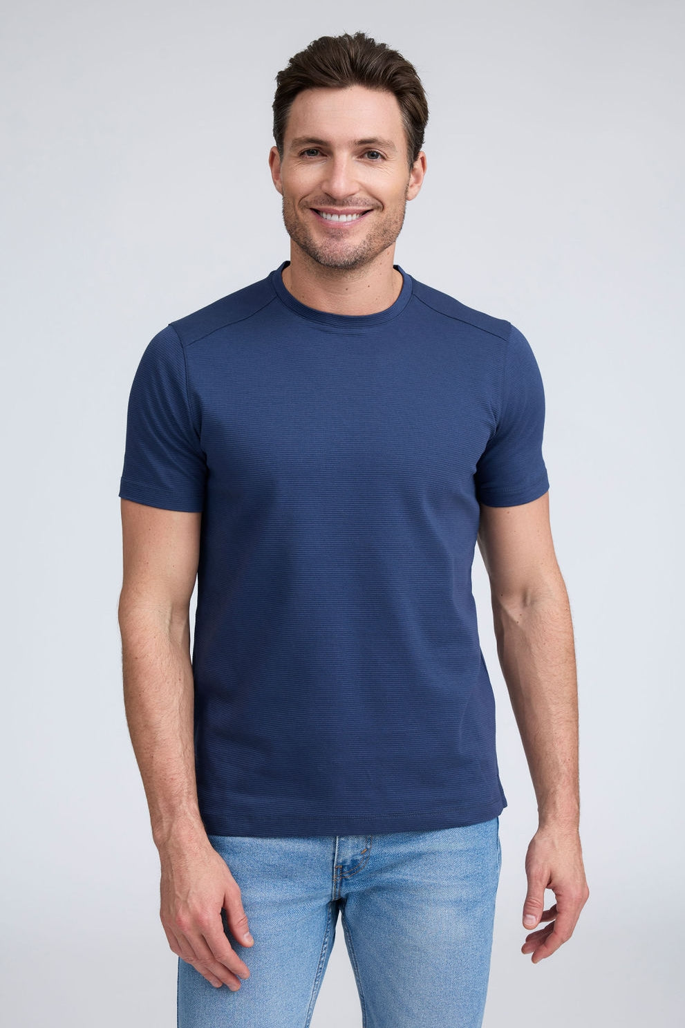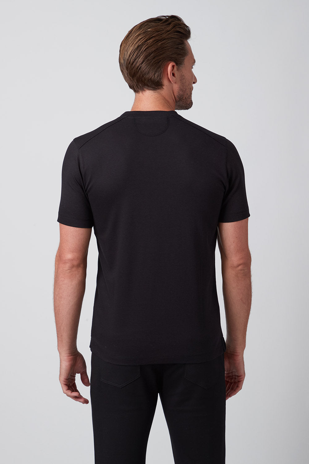 Get ready to strut your stuff in our brand new 100% Aqua Cotton crew neck t-shirt with tonal ribbed striping. Elevate your crew neck when hanging out with friends or dressing up for an event, The Silas is both comfortable and stylish and comes in classic colors white and black, taking your casual look to the next level!