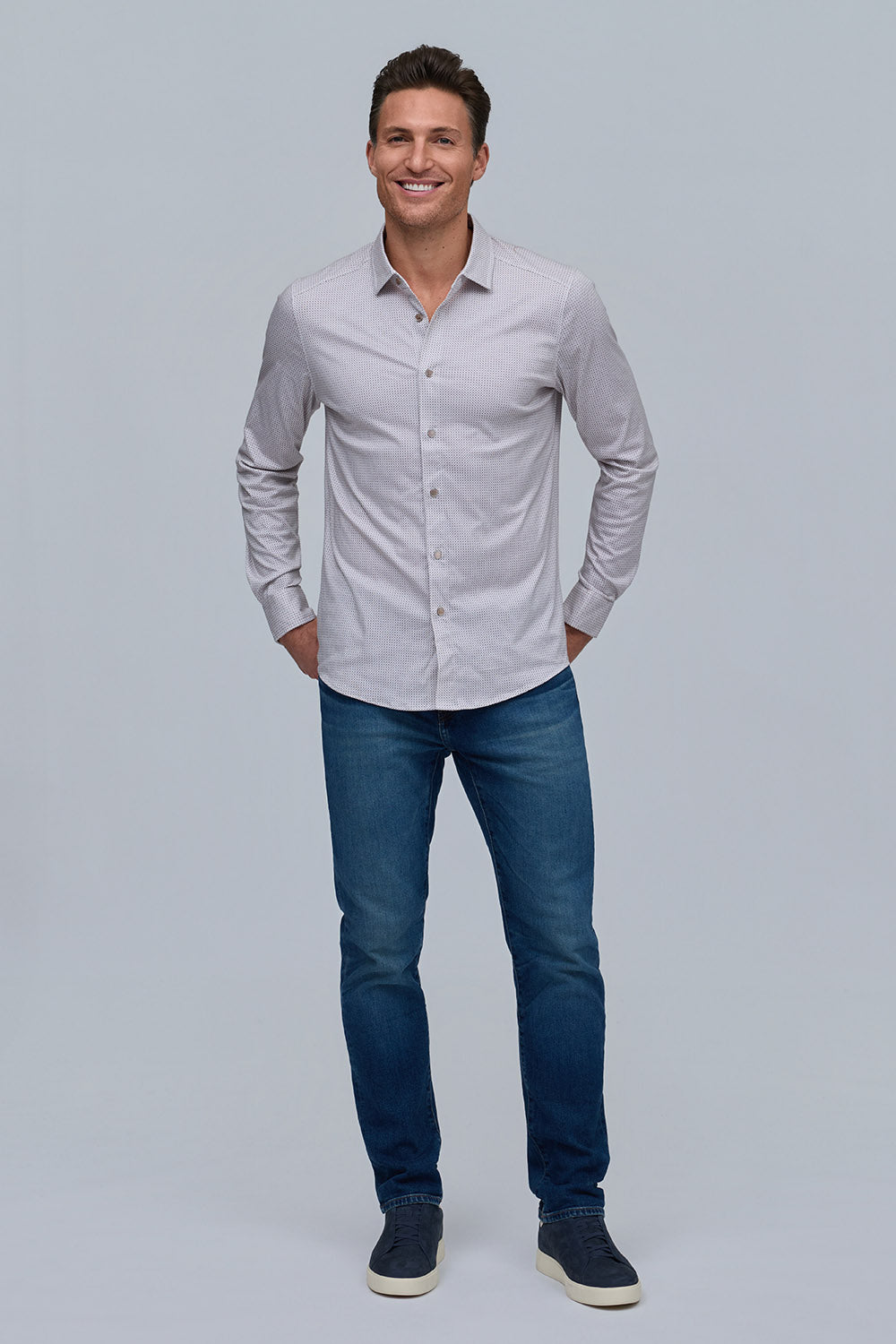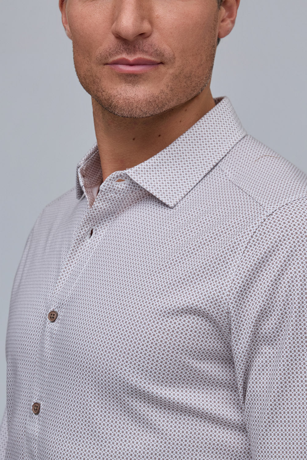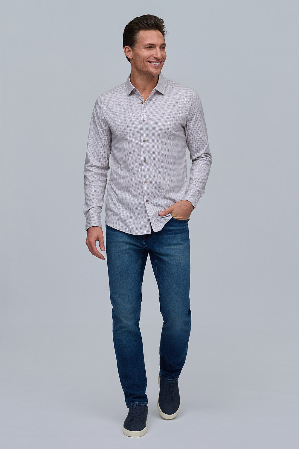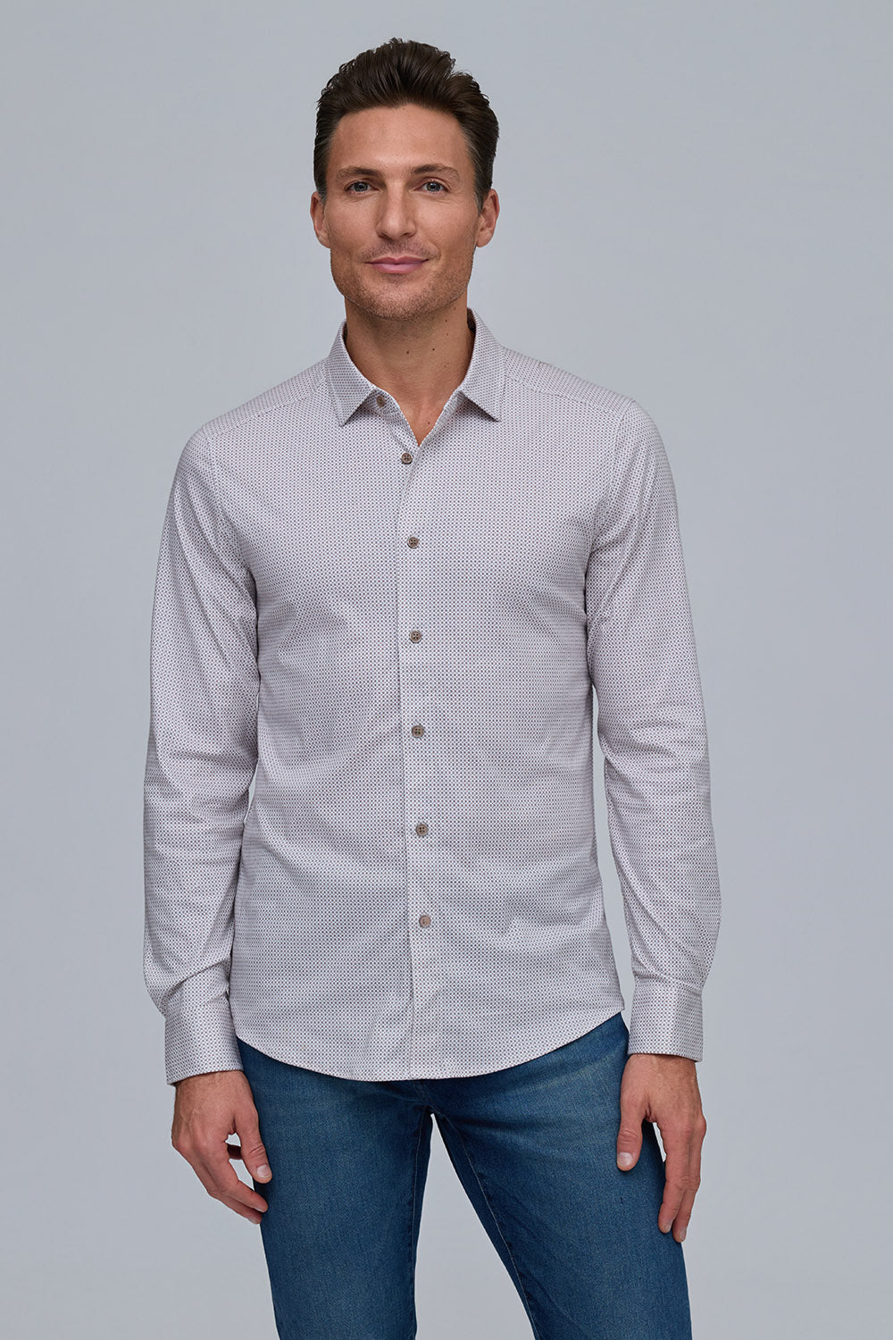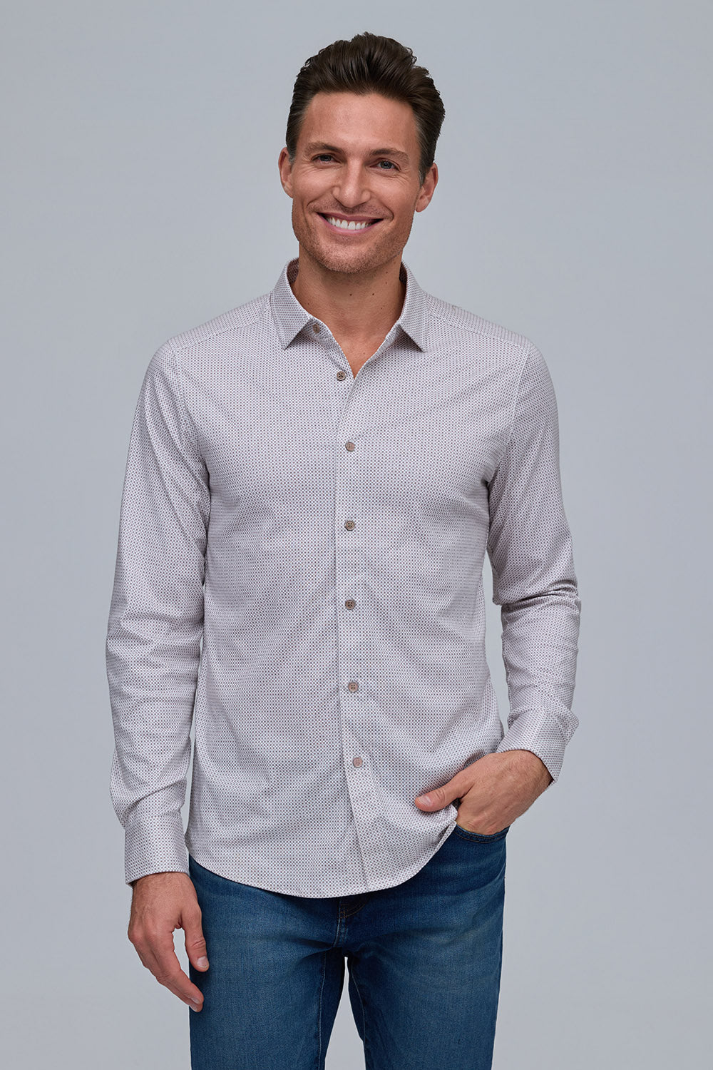 Crafted from 100% pure Aqua cotton, this printed button-front shirt blends breathable comfort with refined style. A subtle micro print adds modern, understated elegance—perfect for the smart-casual wardrobe.