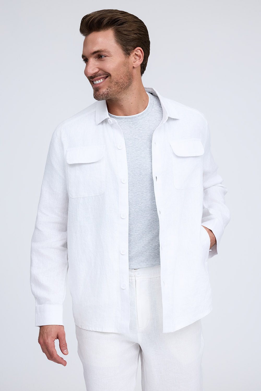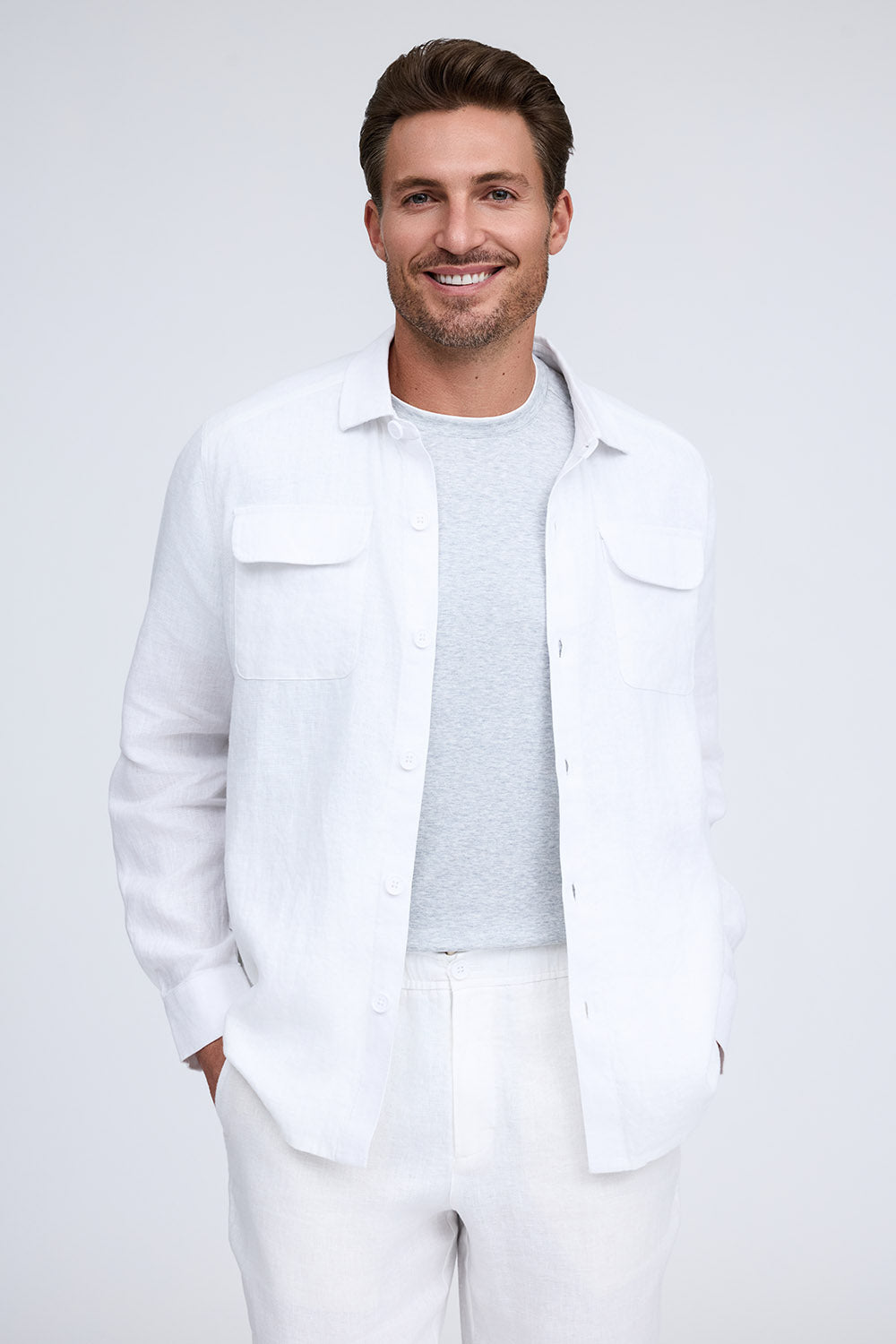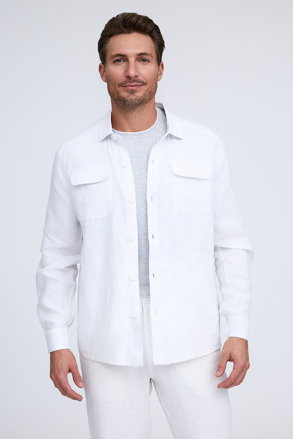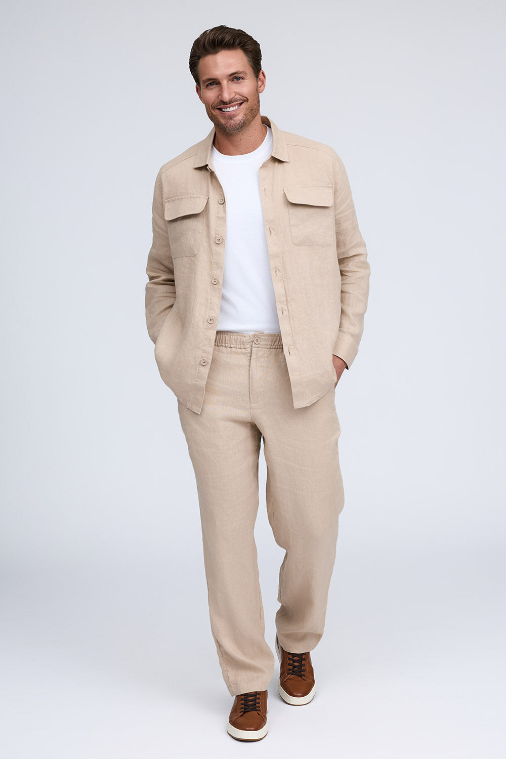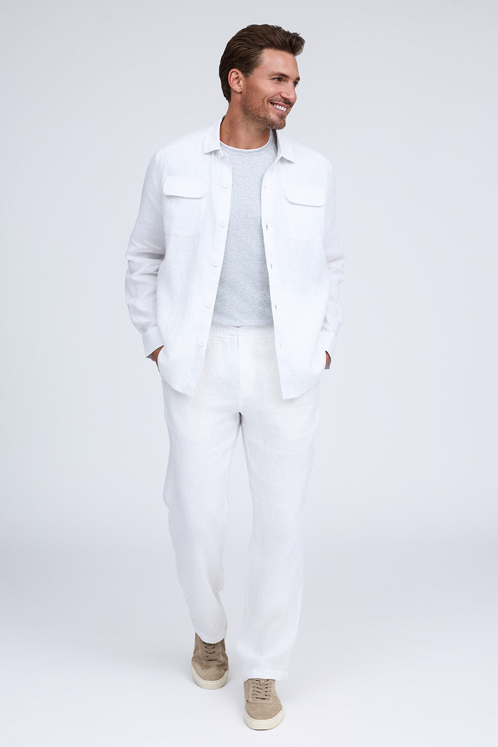 Light and breezy, The Thad linen shirt jacket is the perfect versatile piece to wear on its own or layered over an Aqua Cotton tee. A must-have for Spring and Summer, it’s ideal for any occasion. Pair it with The Diego for an effortless look that is both dressy and relaxed.