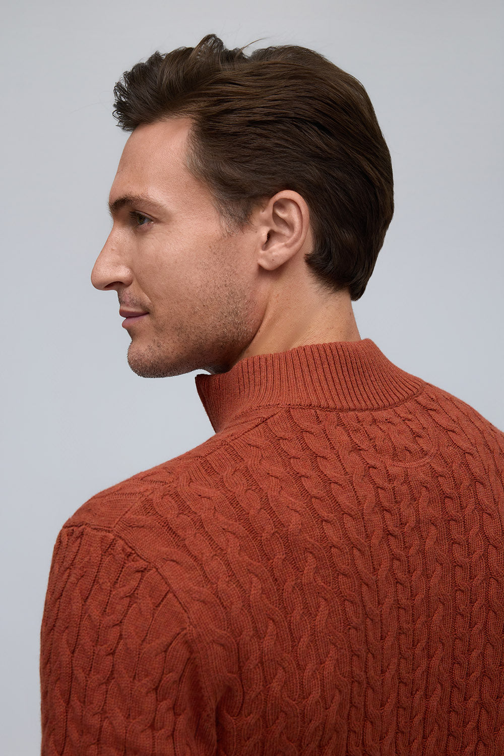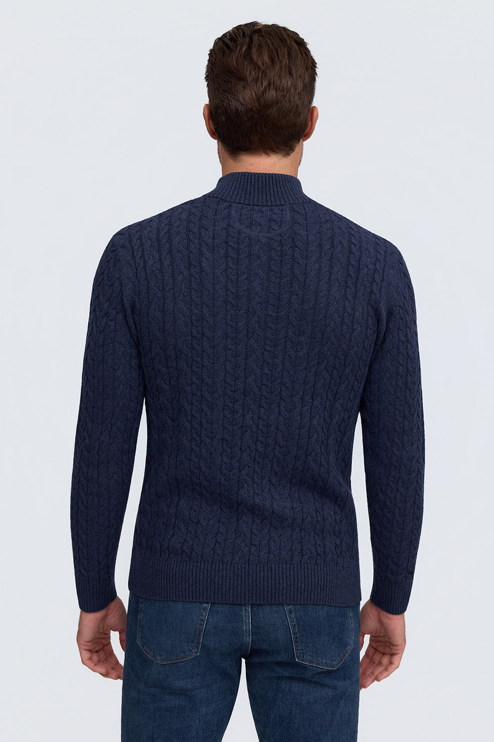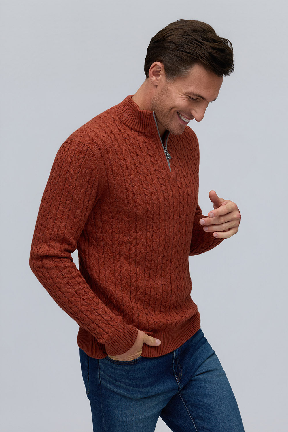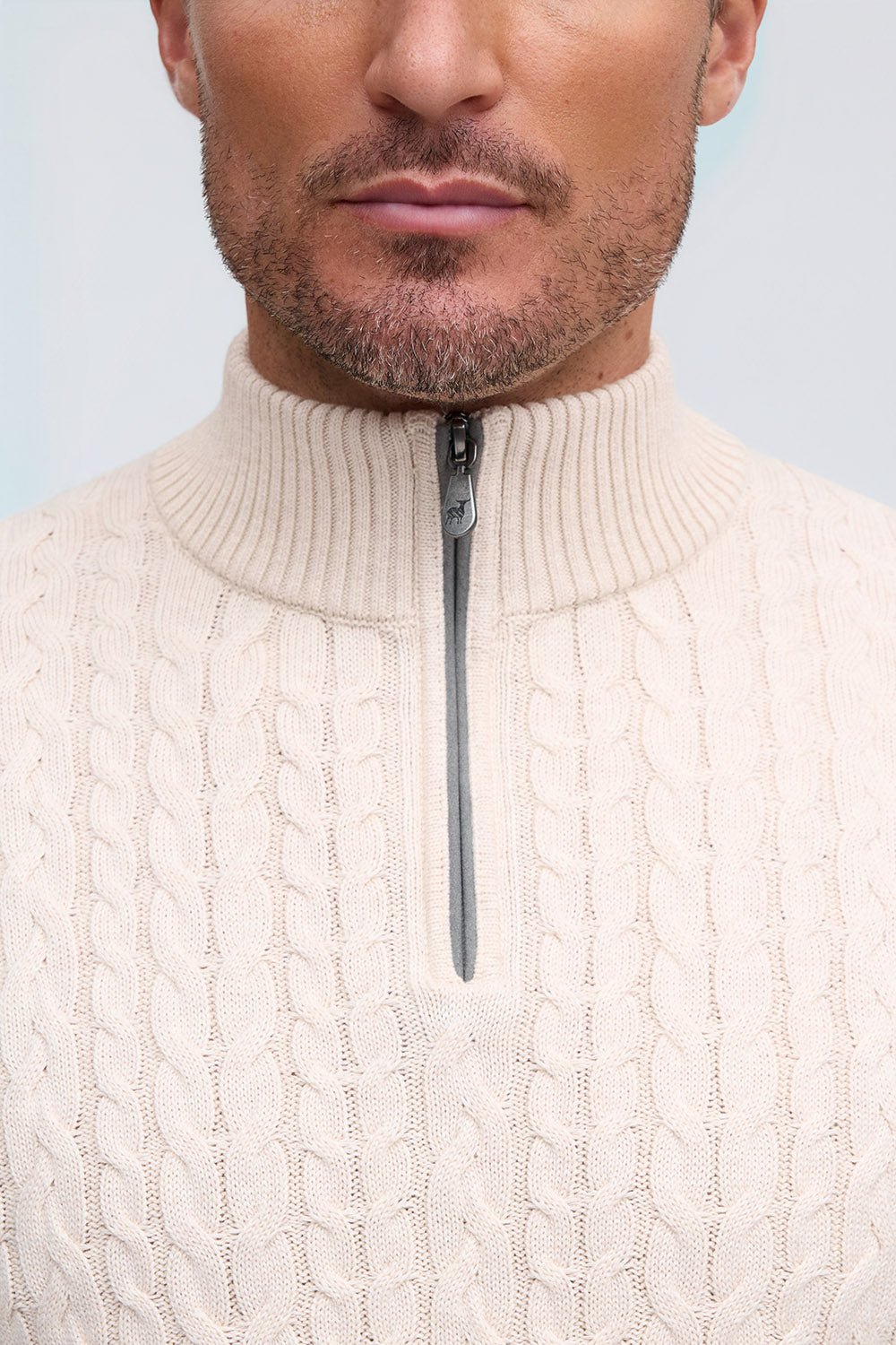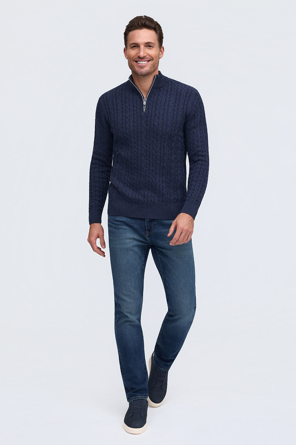 100% Cotton Cable Knit Zip Mock Neck Sweater