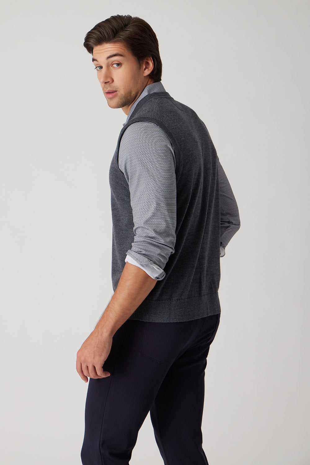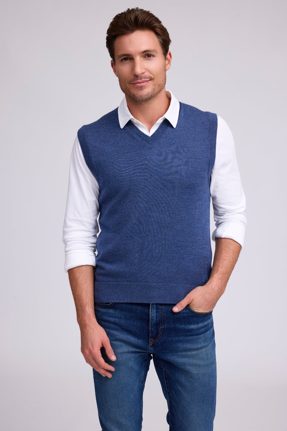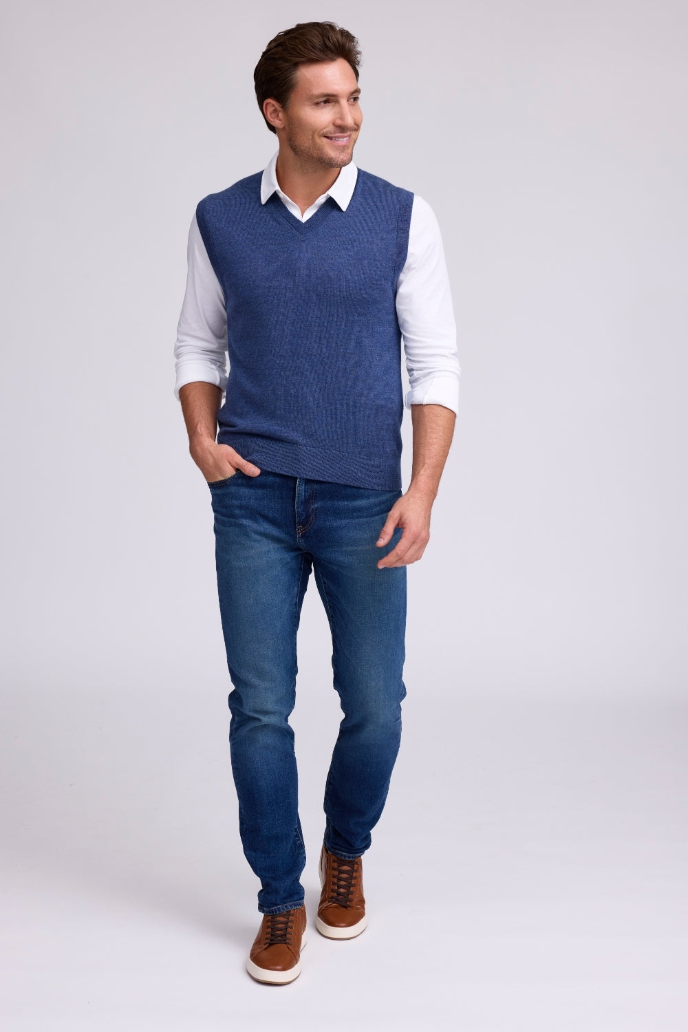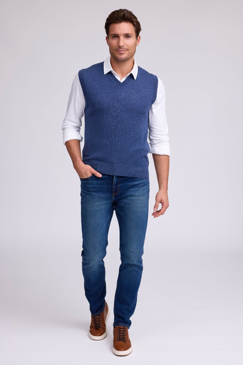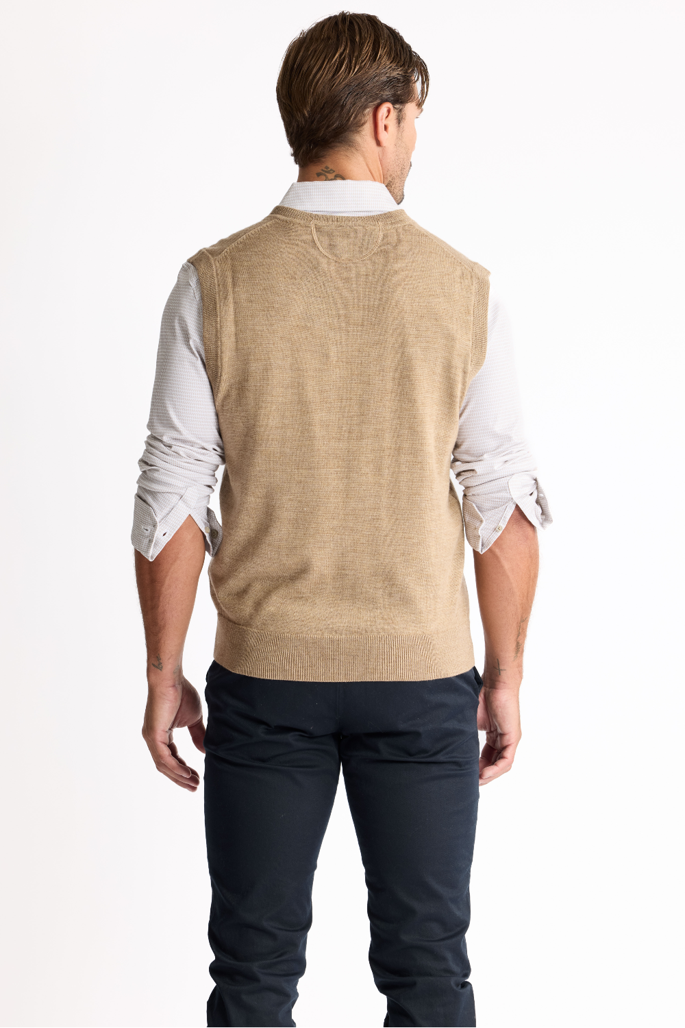 The Whitman is sophisticated, stylish, and trendy, all-in-one. Our 100% Extrafine Merino Wool sleeveless vest will elevate your attire worn over a button-down for a day in the office or over a t-shirt in the warmer months. This classic piece will be in style for years to come.